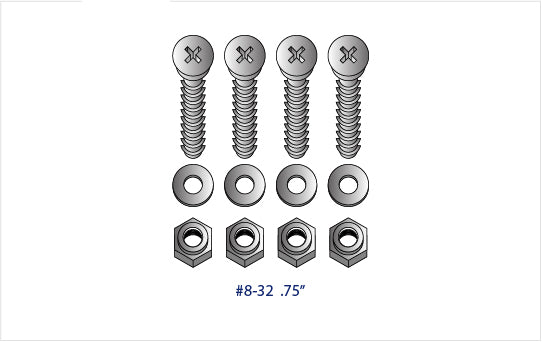 GRADE 2 TITANIUM #8-32 FLAT HEAD MACHINE SCREWS W/ WASHERS & LOCKNUTS (PACK OF 4)