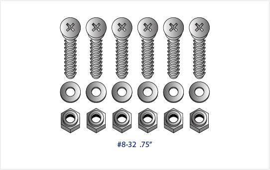 GRADE 2 TITANIUM #8-32 FLAT HEAD MACHINE SCREWS W/ WASHERS & LOCKNUTS (PACK OF 6)